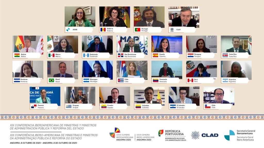 La XIX Conferencia iberoamericana de ministras y ministros de la Administración Pública y Reforma del Estado, copresidida por Andorra y Portugal y que se ha celebrado este jueves de forma telemática y organizada por Andorra, se ha cerrado con la aprobación, por parte de los 22 países de la región, de una declaración conjunta que apuesta por el gobierno abierto y se trasladará a la Cumbre de Jefes de Estado y de Gobierno que tendrá lugar el próximo 22 de abril en el Principado.