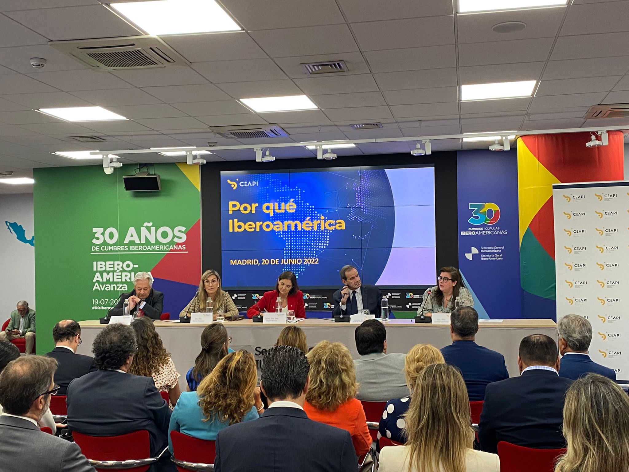 Madrid, 20 de junio de 2022 – “A pesar de la coyuntura adversa, hay razones para ser optimistas: Iberoamérica se puede convertir en una de las regiones del mundo con mayor potencial post Covid-19”. Así lo destaca el estudio ‘Por qué Iberoamérica’, elaborado por el Consejo Empresarial Alianza por Iberoamérica (CEAPI) y presentado hoy en un acto que ha contado con la presencia de la ministra de Industria, Comercio y Turismo, Reyes Maroto; el secretario general iberoamericano (SEGIB), Andrés Allamand; la presidenta de CEAPI, Núria Vilanova y el autor del informe, el director de Estudios e Investigación de CEAPI, Germán Ríos.