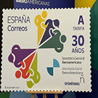 Correos de España presentó el lunes 6 de septiembre un nuevo sello que conmemora 30 años de las Cumbres Iberoamericanas (1991-2021). Al acto asistieron la secretaria general iberoamericana, Rebeca Grynspan, y el presidente de Correos, Juan Manuel Serrano, junto a distintos embajadores y representantes de diversas sedes diplomáticas en Madrid.