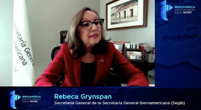 La secretaria general iberoamericana, Rebeca Grynspan participó en la sesión de apertura donde afirmó que “la agenda digital se ha vuelto, ya no un tema de productividad o de crecimiento económico inclusivo, sino directamente se ha vuelto un tema de supervivencia”.