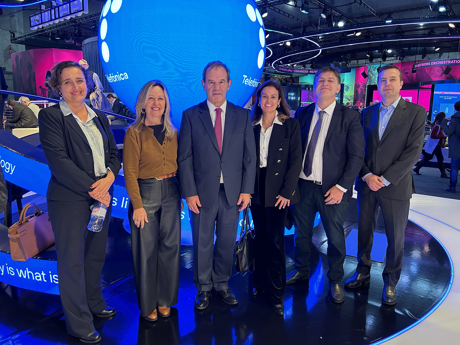 Durante su visita al Mobile World Congress, el Secretario General Iberoamericano también visitó el stand de Telefónica, donde se reunió con el presidente ejecutivo de Telefónica, José María Álvarez-Pallete, y la directora de estrategia global de Asuntos Públicos de la compañía, Trinidad Jiménez.